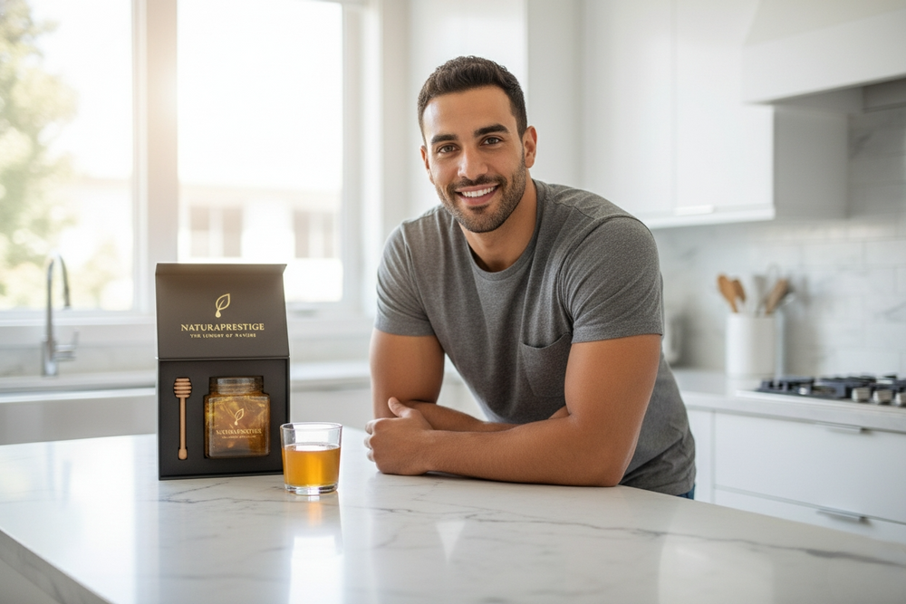 NaturaPrestige هو مزيج فاخر من العسل الطبيعي 100% مع مكونات نادرة مثل الشيلاجيت، الجنسنج، وغذاء ملكات النحل. تم تصميمه لمساعدة الرجال على استعادة الطاقة اليومية المستدامة، التركيز الحاد، والحيوية الشاملة.